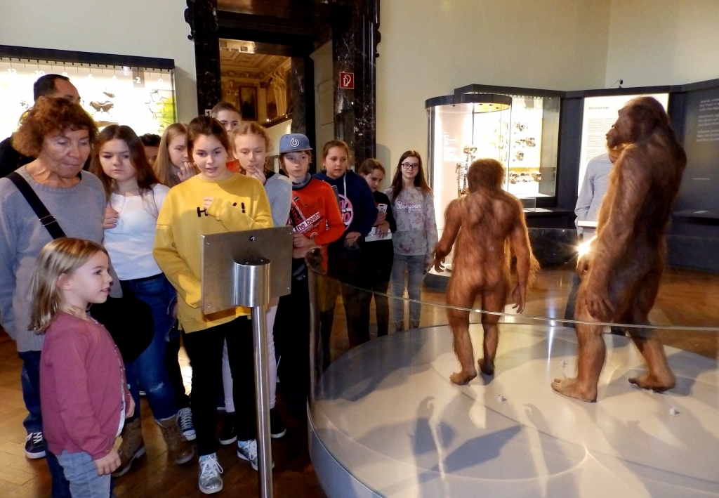 Po príchode do Viedne sme sa hneď metrom premiestnili k historickej budove Prírodovedného múzea, kde sme strávili nasledujúce 3 hodiny. Toto múzeum patrí so svojimi 39 výstavnými miestnosťami na 2 poschodiach k najväčším múzeám na svete. Mali sme možnosť vidieť zaujímavé exponáty od drahokamov a minerál až po rôzne druhy zvierat, či etapy vývoja človeka. Zaujalo nás aj množstvo interaktívnych prezentácií, kde sme si sami mohli modelovať výbuch sopky, či pozerať pohyb kontinentov v čase. Zábavná bola aj maketa dinosaura, ktorá nás vystrašila, keďže sa hýbala a vydávala aj zvuky.