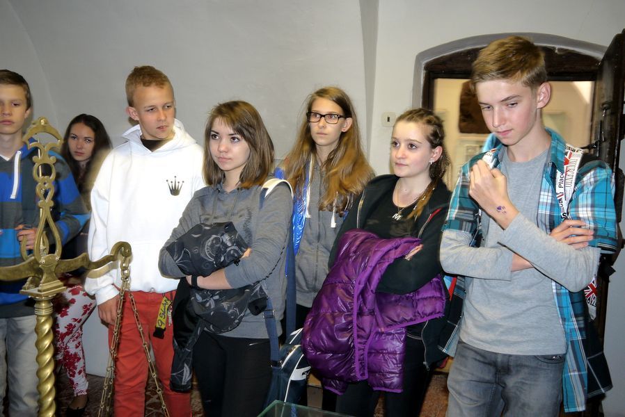 Ďalej sme pokračovali prehliadkou ďalších pamätihodností na Hlavnej ulici, kde sme si zopakovali, čo sme sa naučili na hodinách. Žiaci sa dozvedeli, že pred Aidou bolo niekedy popravisko, že morový stĺp bol postavený, aby pripomínal morovú epidémiu zo začiatku 18. storočia, že v divadle sú na strope maľby zobrazujúce scény zo Shakespearových hier, že dóm sv. Alžbety je najvýchodnejšia gotická katedrála v Európe, že najstarší kostol v Košiciach je Dominikánsky kostol a mnohé ďalšie zaujímavosti. Žiaci boli aktívni a niektorí ukázali, že by sa možno uživili aj ako sprievodcovia. Nakoniec sme si prehliadli priestory Miklušovej väznice, kde žiaci videli množstvo zaujímavých exponátov, z pútavého výkladu pani sprievodkyne sa dozvedeli mnoho o tom, ako sa žilo v Košiciach v stredoveku, ako boli zariadené ich domy, ako boli trestaní zločinci, ale aj ako sa chránili pred požiarmi a iné veci. No najviac ich zaujala asi prehliadka pivničných priestorov, v ktorých sa dozvedeli o tom, ako sa mučilo a popravovalo v stredovekých Košiciach.